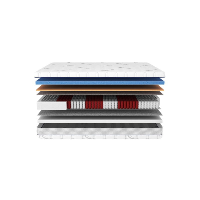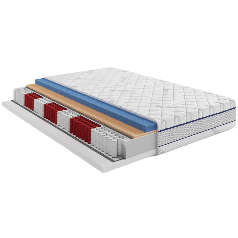Wkład | sprężyna kieszeniowa typu multipocket ( 1.3/1.4 mm) 500m/kw, po jednej stronie filc, pianka XFoam 2cm, pianka pneumatic 5cm, po drugiej stronie filc i pianka HR o wys. 4cm |