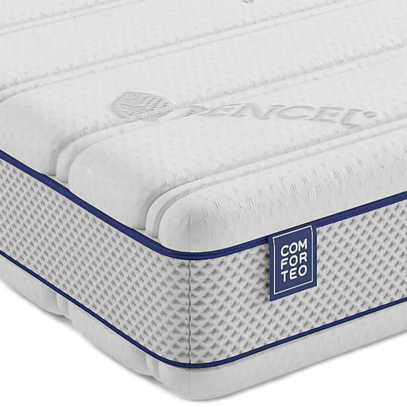 Materac ubrany jest w pokrowiec TENCEL, który wyróżnia się doskonałą oddychalnością, która zapewnia komfortowy sen przez całą noc. Dzięki unikalnym właściwościom włókien materiał efektywnie wchłania wilgoć i odprowadza ją na zewnątrz, co pozwala na regulację temperatury ciała i tworzy optymalne warunki do odpoczynku.