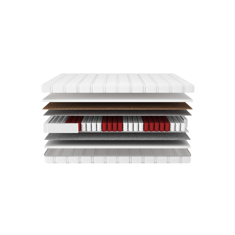 Wkład: 7 strefowa sprężyna kieszeniowa, filc, mata kokosowa, pianka XFoam